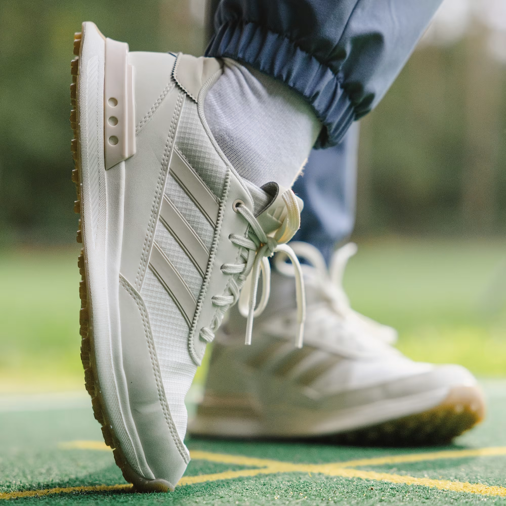 Lace up all-day comfort for social rounds and beyond. Inspired by the lightweight, responsive feel of a running shoe, these spikeless golf shoes offer a solid stance and all-day, anywhere style. The waterproof upper and protective toe cap keep feet dry through damp greens, and the spikeless Adiwear outsole and supportive heel cup provide the stability and traction for a strong stance while making for easy transitions off the course. By choosing recycled, we are able to reuse materials that have already been created, which helps to reduce waste. Renewable materials choices will help us to remove our reliance on finite resources. Our products made with a blend of recycled and renewable materials feature at least 20% total of these materials.