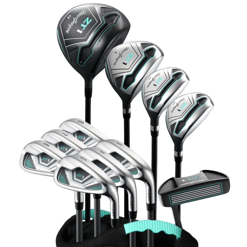 - Premium MacGregor soft grips, Lightweight carbon composite regular flex shafts and 4 stylish headcovers